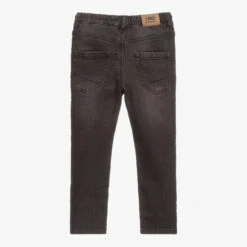 Boys grey jeans from Alviero Martini, with the brand’s distinctive dark beige Geo map trim on the front and back. Made with soft cotton, they have the look of denim and the comfort of stretchy jersey. A classic five-pocket style, they fasten with a zip and branded button and have an adjustable waist for a good fit.