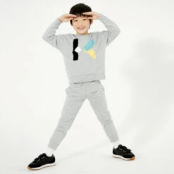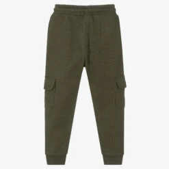 Beige joggers for boys by DKNY, made in mid-weight cotton blend jersey. The casual style has a modern twist with silky pockets on the front, one of which has a black logo print. The elasticated waist has an adjustable drawstring for a better fit.