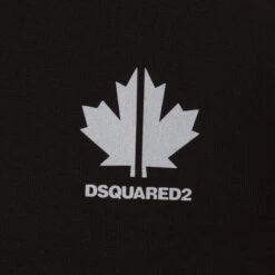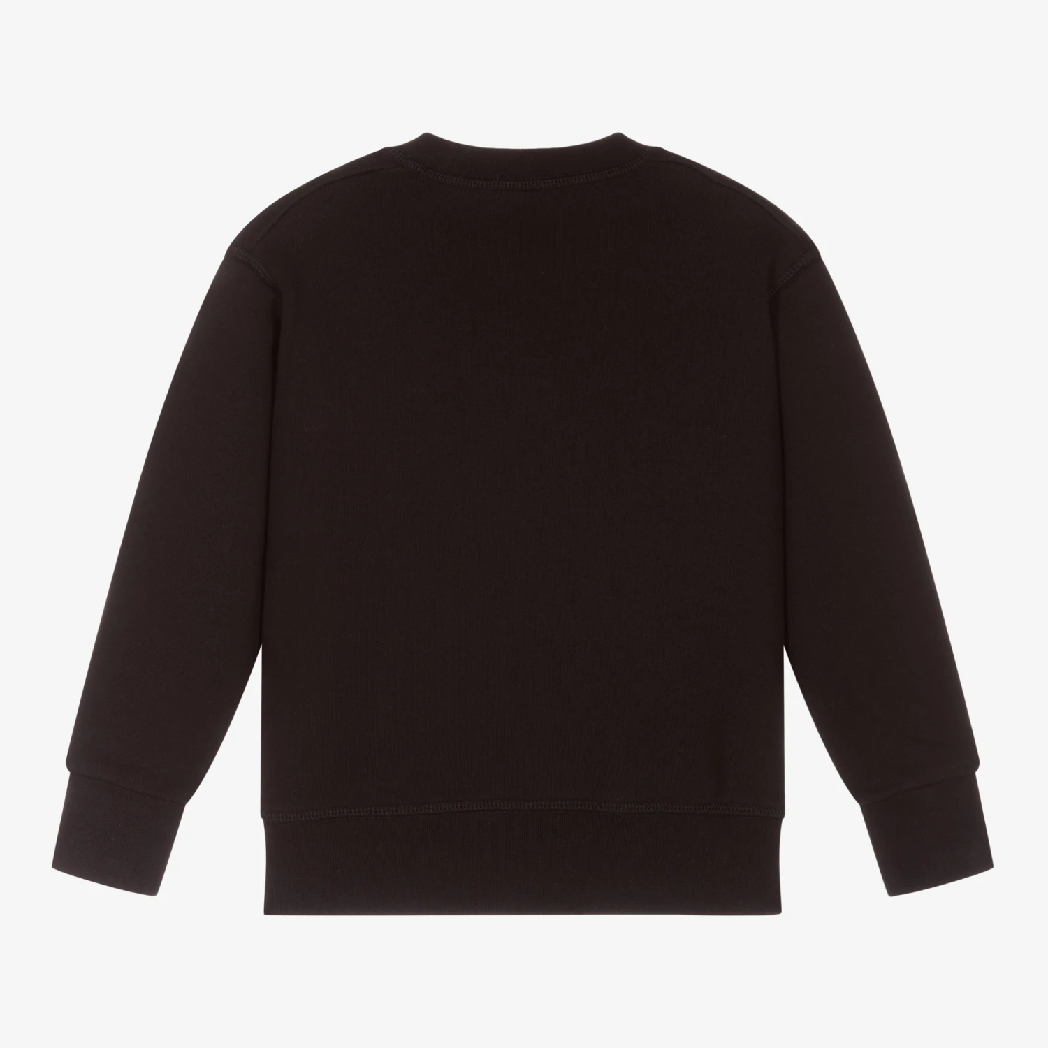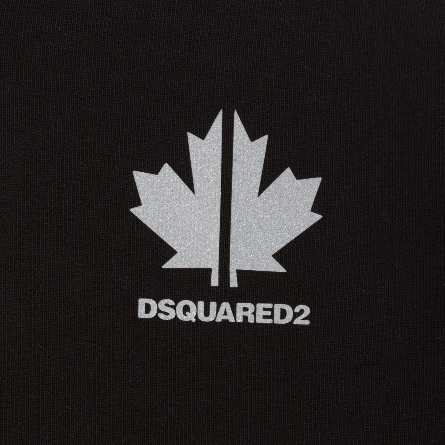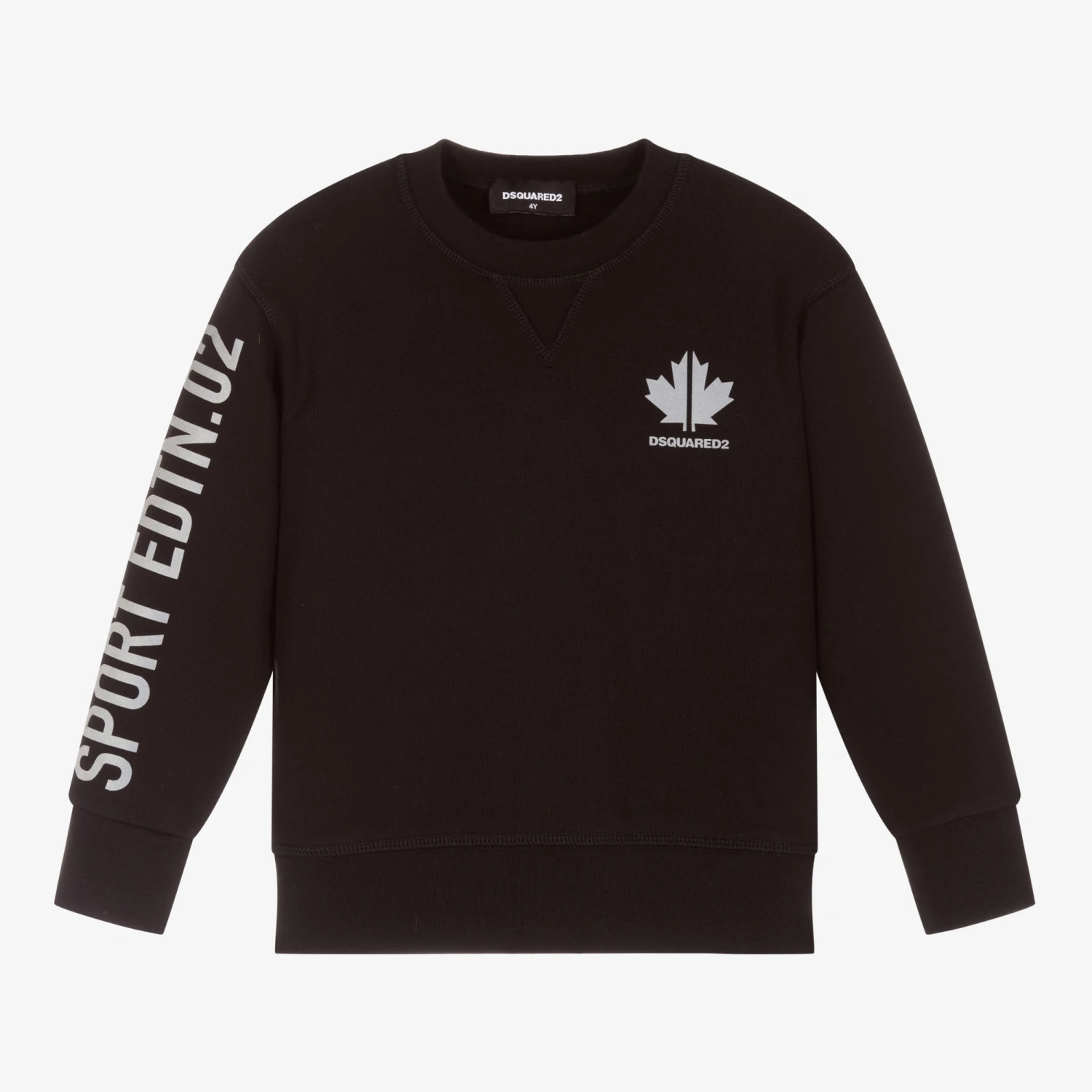 Black sweatshirt for boys and girls by Dsquared2. It is made in soft cotton jersey, with ribbed trims and a warm fleecy inside. There are silver reflective logo prints on the chest and on one sleeve.
