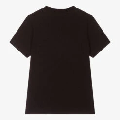 Black T-shirt for boys by Dsquared2, made in soft cotton jersey. It has a graphic logo print on the front in sunset colours.