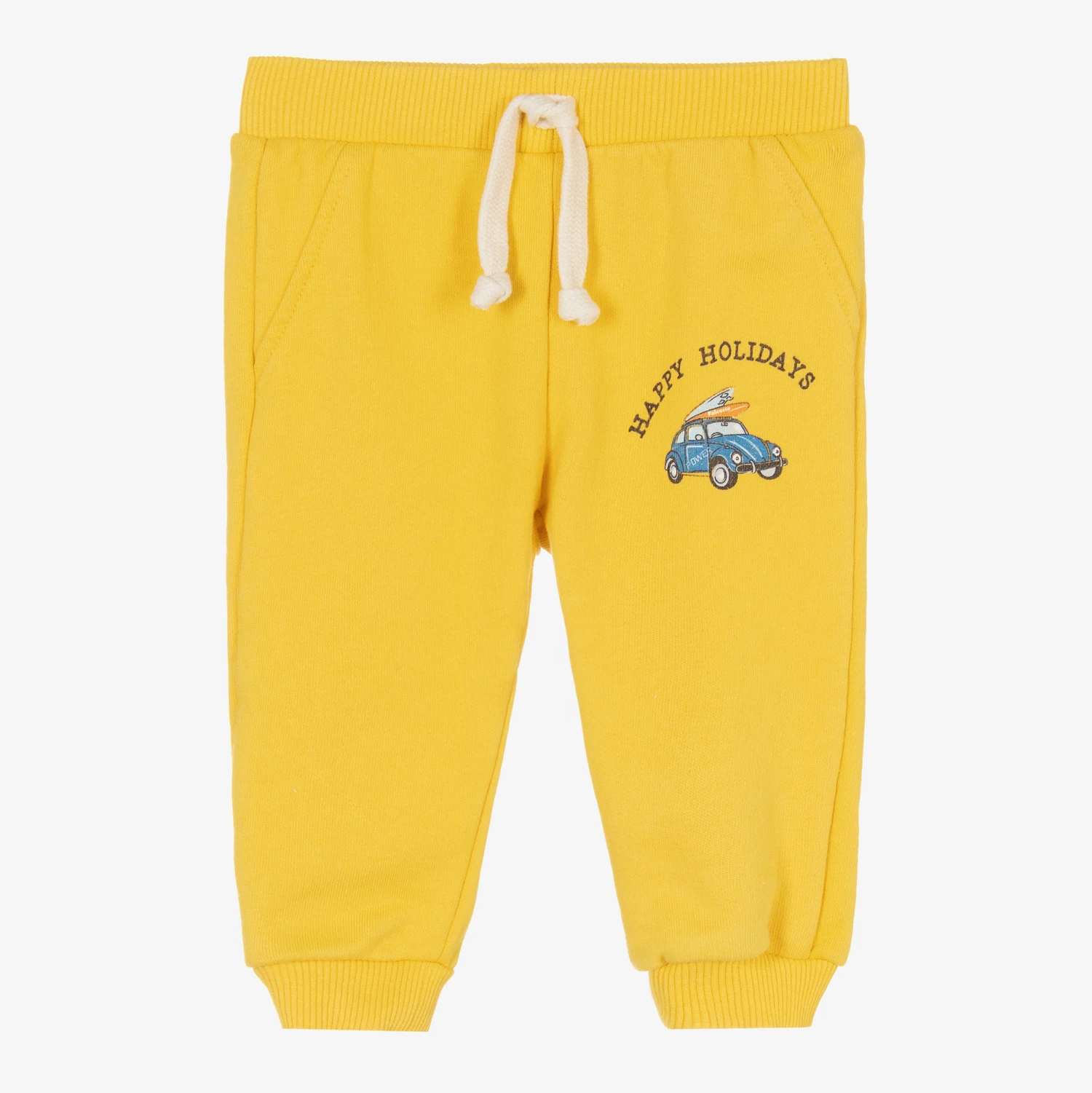Comfortable yellow joggers for little boys from Falcotto by Naturino. Made in soft cotton jersey, this casual cuffed style has an elasticated waist with faux drawstring and pocket detail on the front. A fun holiday-themed print on one leg completes the relaxed vibe.