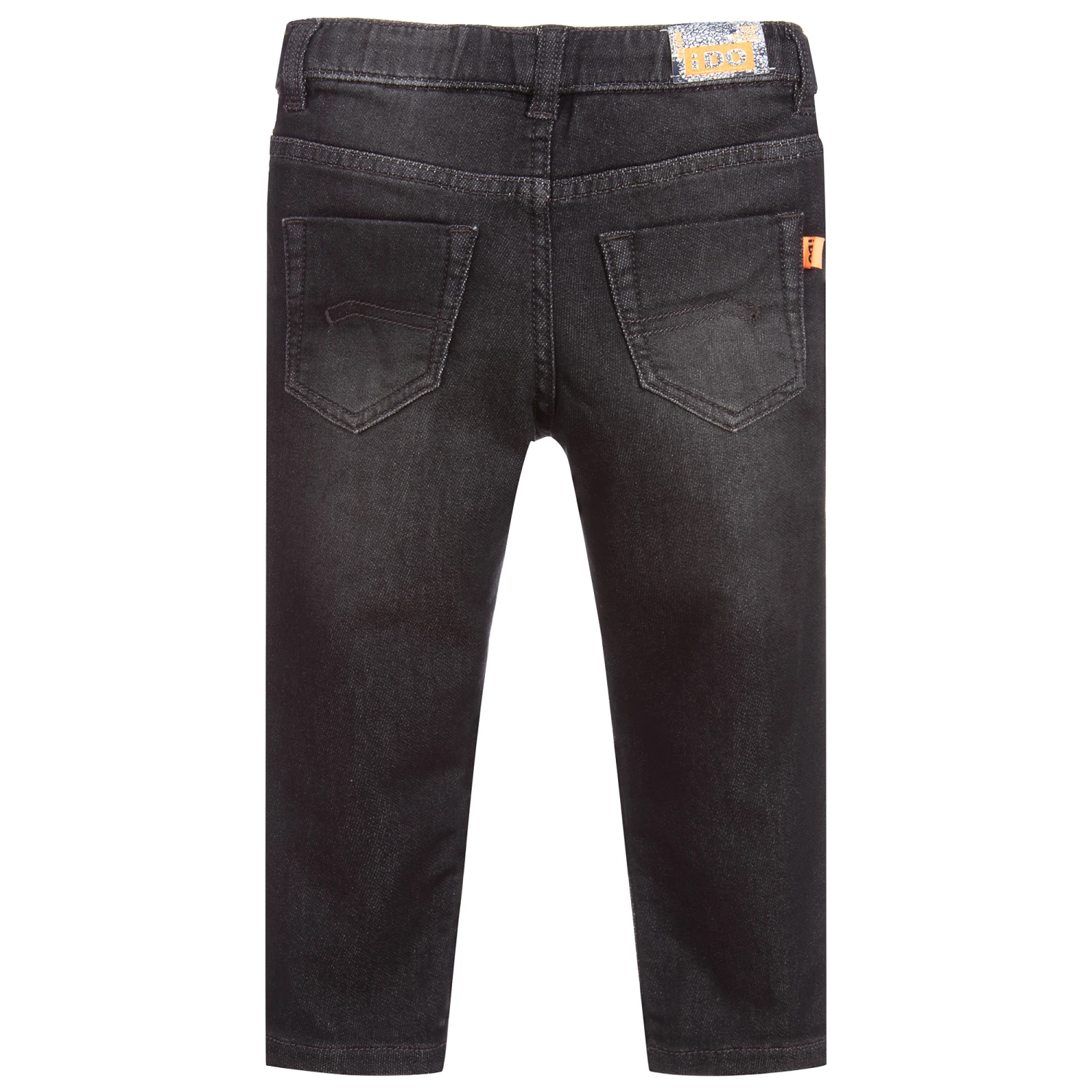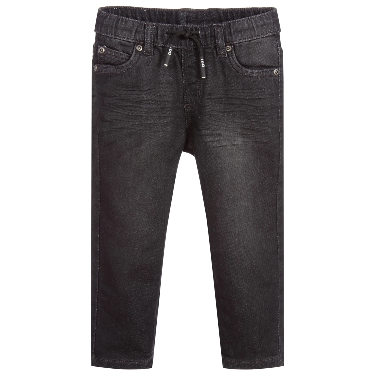 Boys black jersey jeans by iDO Baby. Soft and comfortable, the are made in a mid-weight cotton blend jersey with the look of washed denim. They have an elasticated drawstring waist, a ‘joggers fit’ and pockets on the front and back.