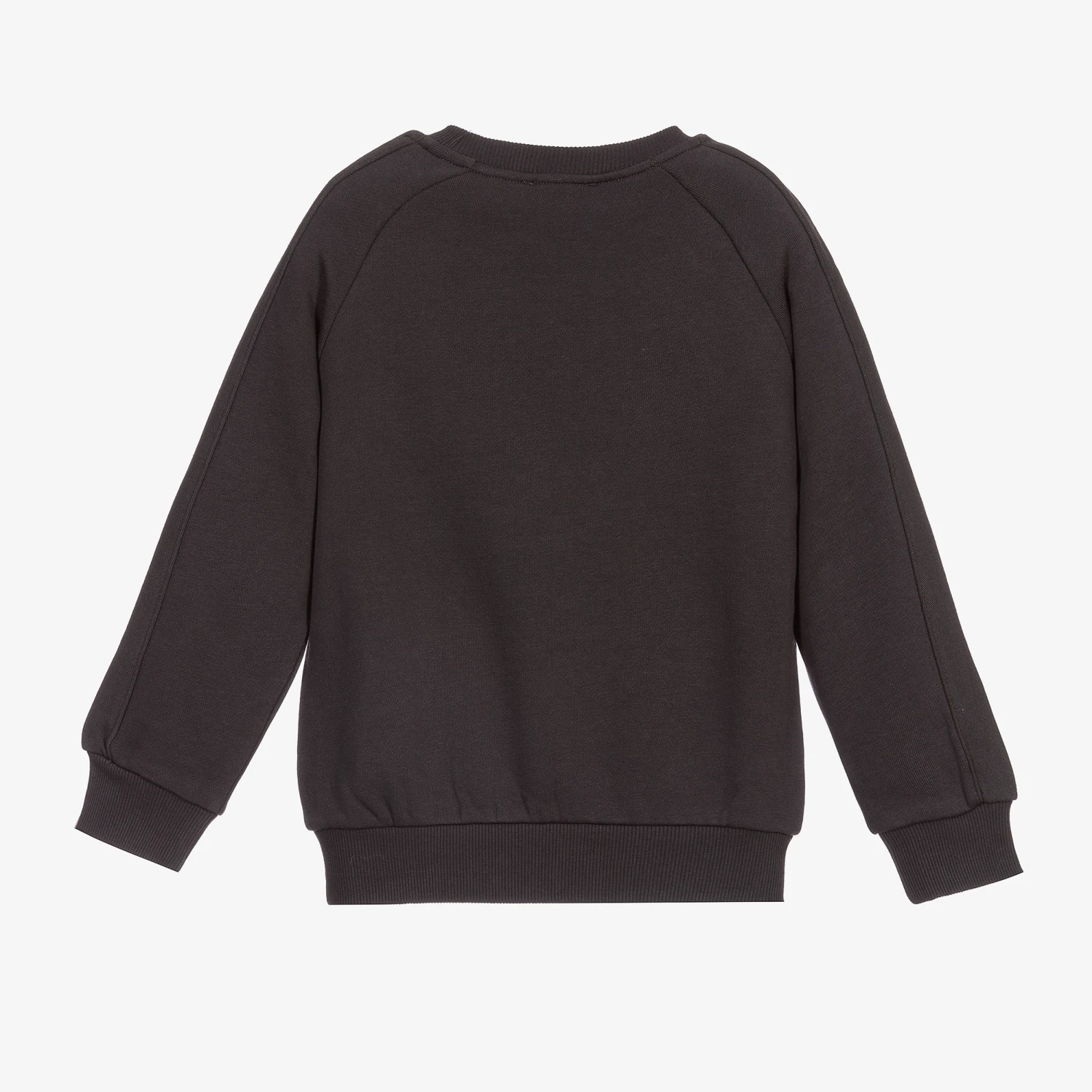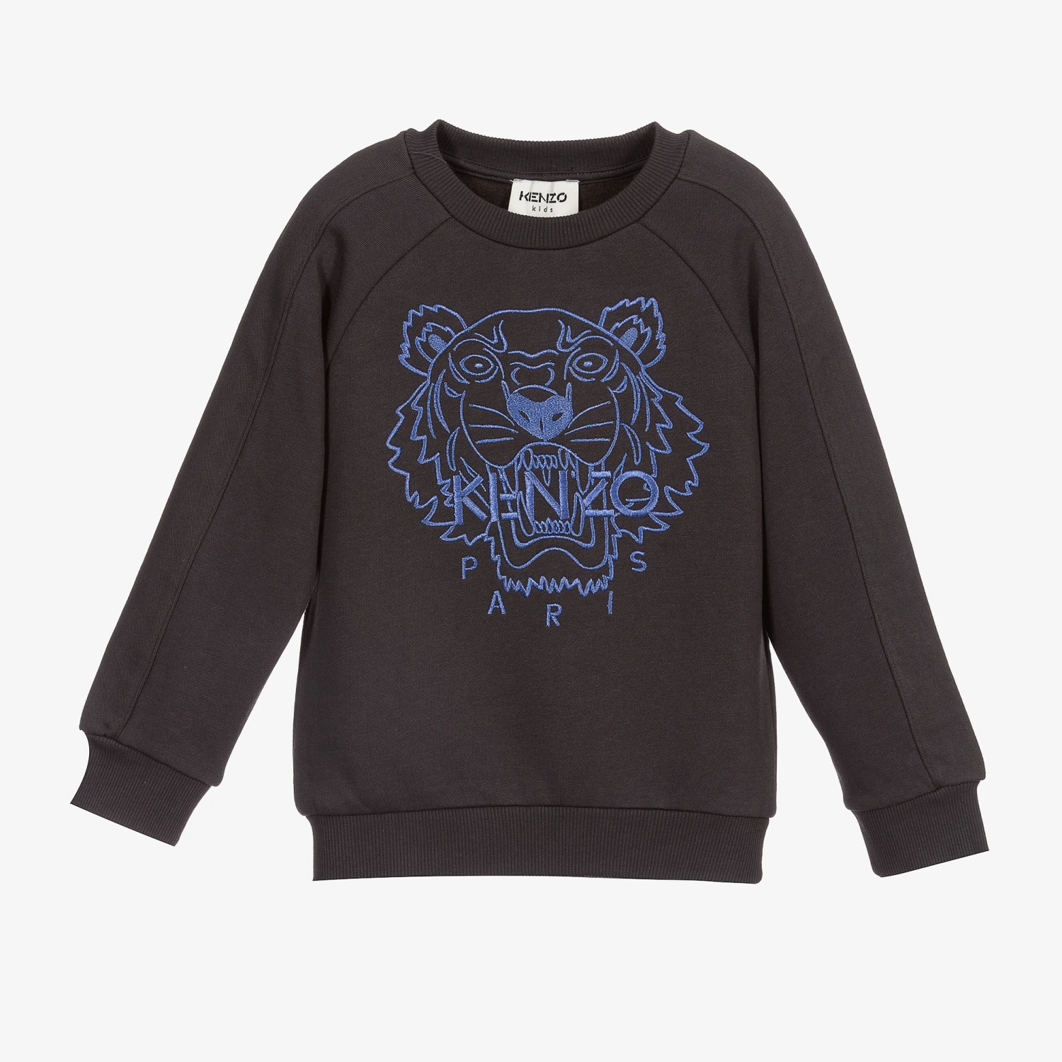 Dark grey sweatshirt for boys by KENZO KIDS, made in soft cotton jersey. The brand’s iconic Tiger logo is embroidered on the front in blue.