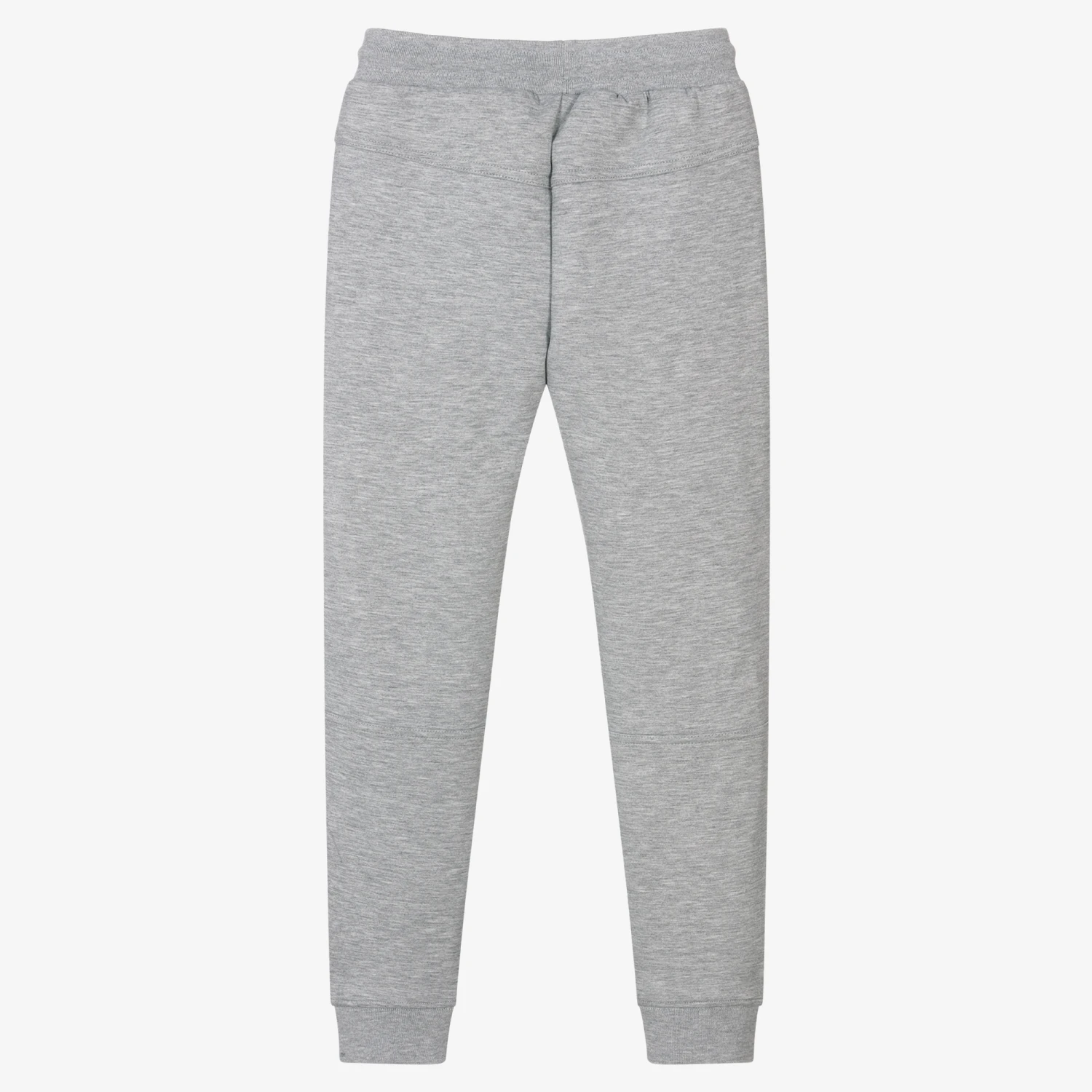 Grey marl joggers for boys by Lyle & Scott, made from soft jersey with moisture wicking, quick-drying qualities. These breathable joggers have an adjustable drawstring waist for a casual fit, with side seam pockets and ribbed trims for comfort. A rubberised Golden Eagle logo is featured on the front for a branded finish.