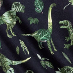 Boys navy blue sweatshirt from Paul Smith Junior, made in soft cotton sweatshirt jersey. It has a green dinosaur and leaf pattern.