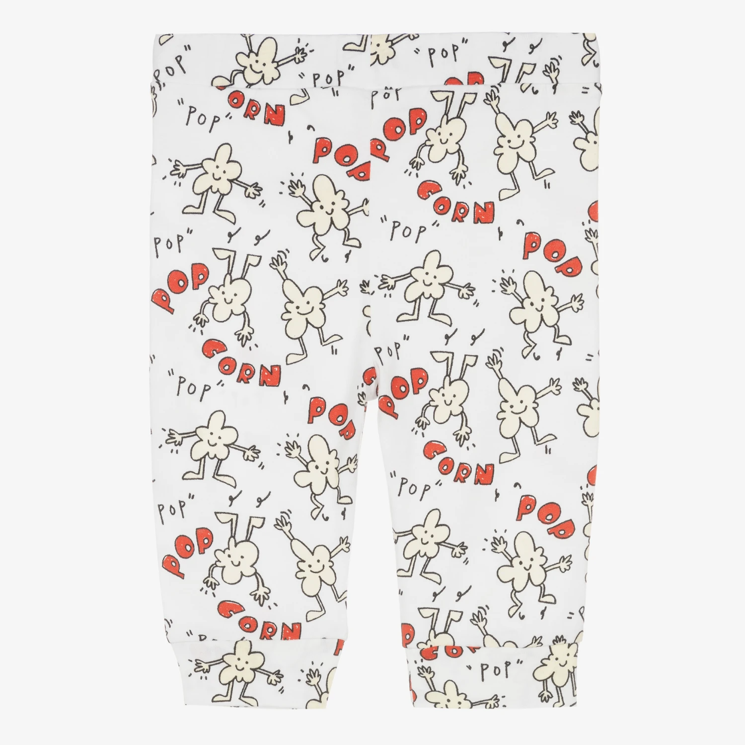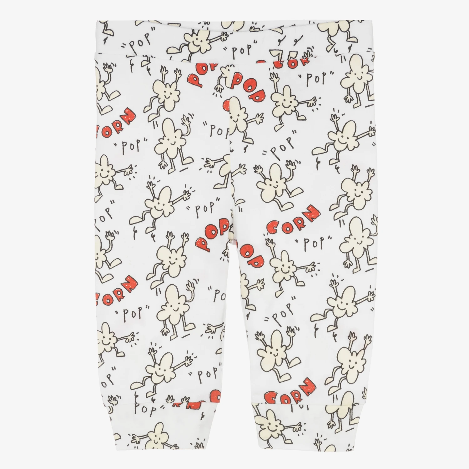 Fun white joggers for little boys, by Stella McCartney Kids, with a quirky popcorn design. They are made in the softest organic cotton jersey, with an elasticated waistband for easy and convenient wear. The Stella McCartney fit can be quite small so choose a size up if you want room to grow.