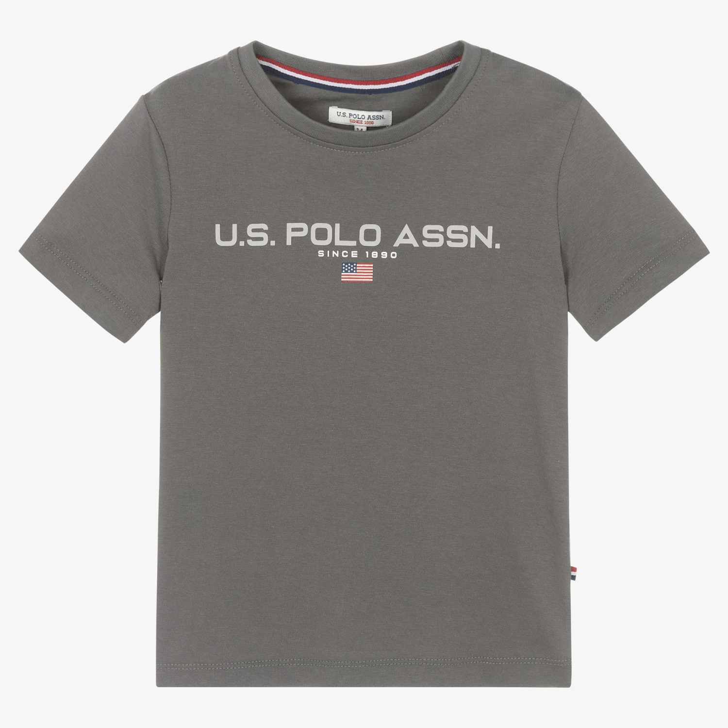 Grey T-shirt for boys by U.S. Polo Assn., with a pale grey logo print on the front. Soft and comfortable, it is made in stretchy cotton jersey.